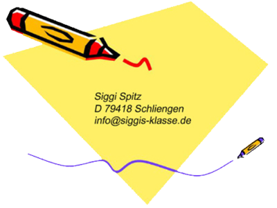 Die unter der Website “www.siggis-klasse.de” enthaltenen Informationen werden ohne jegliche Gewähr veröffentlicht. Änderungen und Irrtümer sind vorbehalten. Verantwortlich für den Inhalt: Siegfried Spitz (Webmaster)